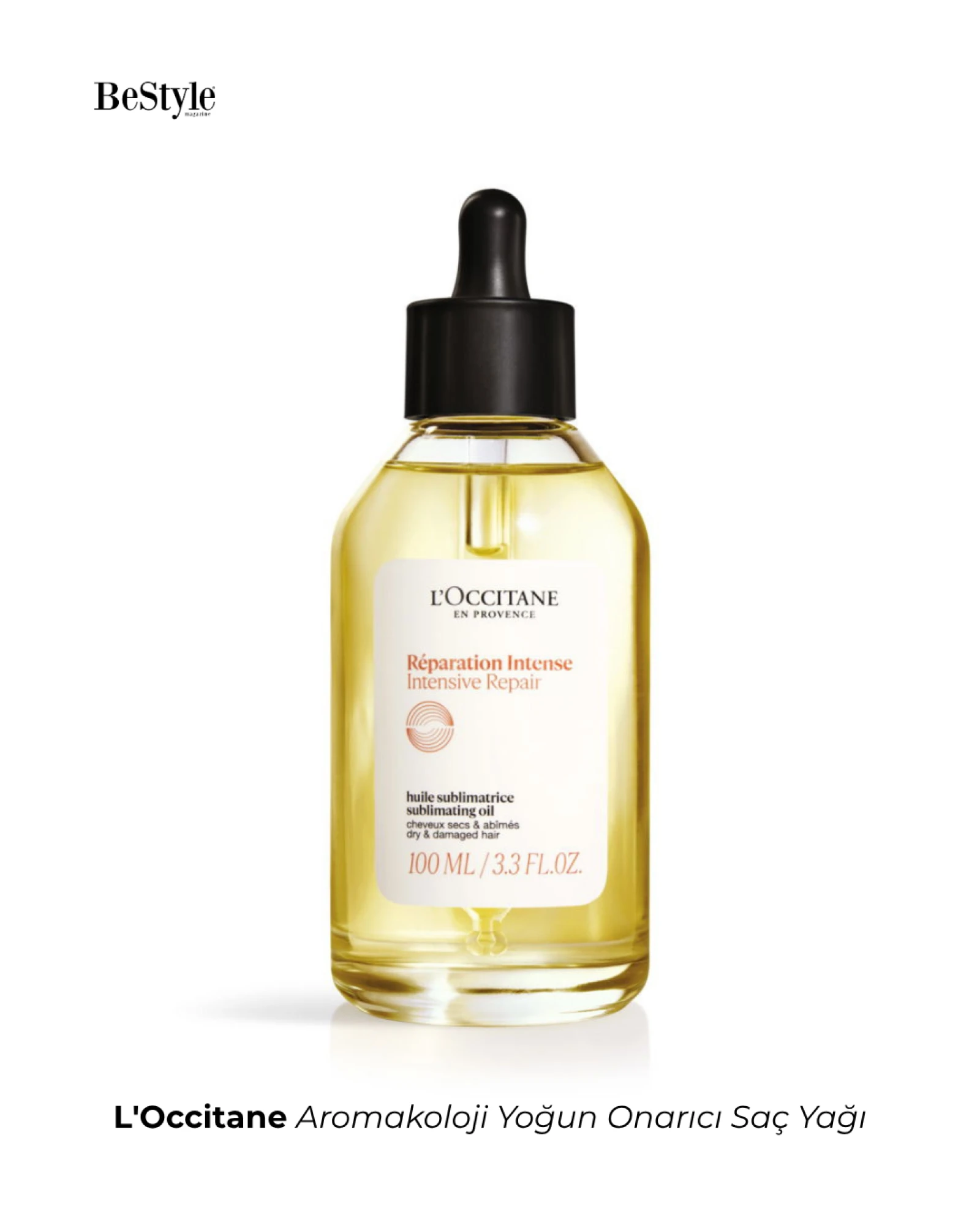5- Provence’ın aromatik bahçelerini saçlarınıza taşıyan L'Occitane, sonbahar geçişinin yarattığı yıpranmaya karşı duyusal bir kalkan sunuyor. Aromakoloji Yoğun Onarıcı Saç Yağı, 5 esansiyel yağı (Ylang-Ylang, Tatlı Portakal, Lavanta, Sardunya ve Melek Otu) zengin bitkisel yağlarla birleştiriyor. Saçı ağırlaştırmadan besleyen bu lüks iksir, saç telini pürüzsüzleştiriyor ve kırılmalara karşı koruyor. Saça bıraktığı sofistike bitkisel koku imzası ise gün boyu size eşlik ediyor.